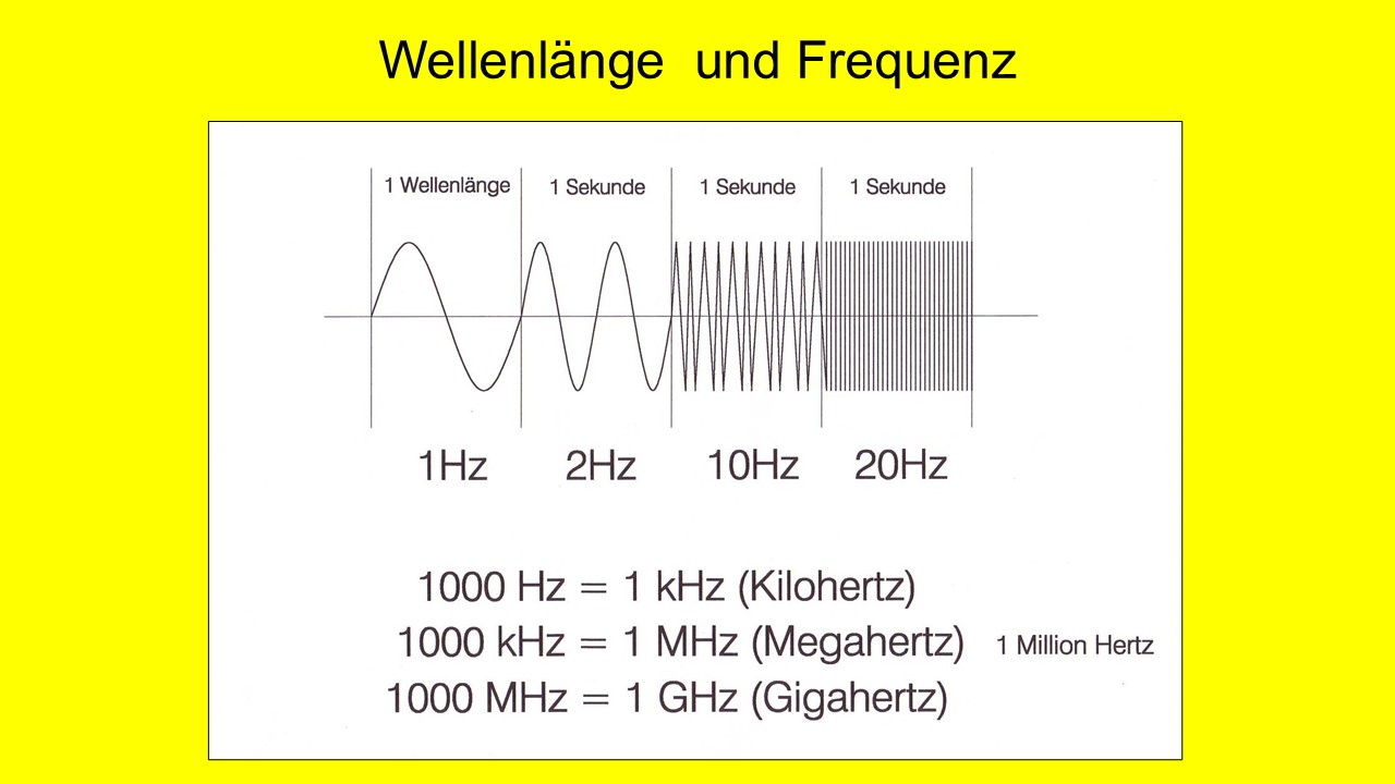 Etwas komplizierter wird es dann, wenn wir aus der Frequenz die Wellenlänge in Metern oder Millimetern erklären müssen.