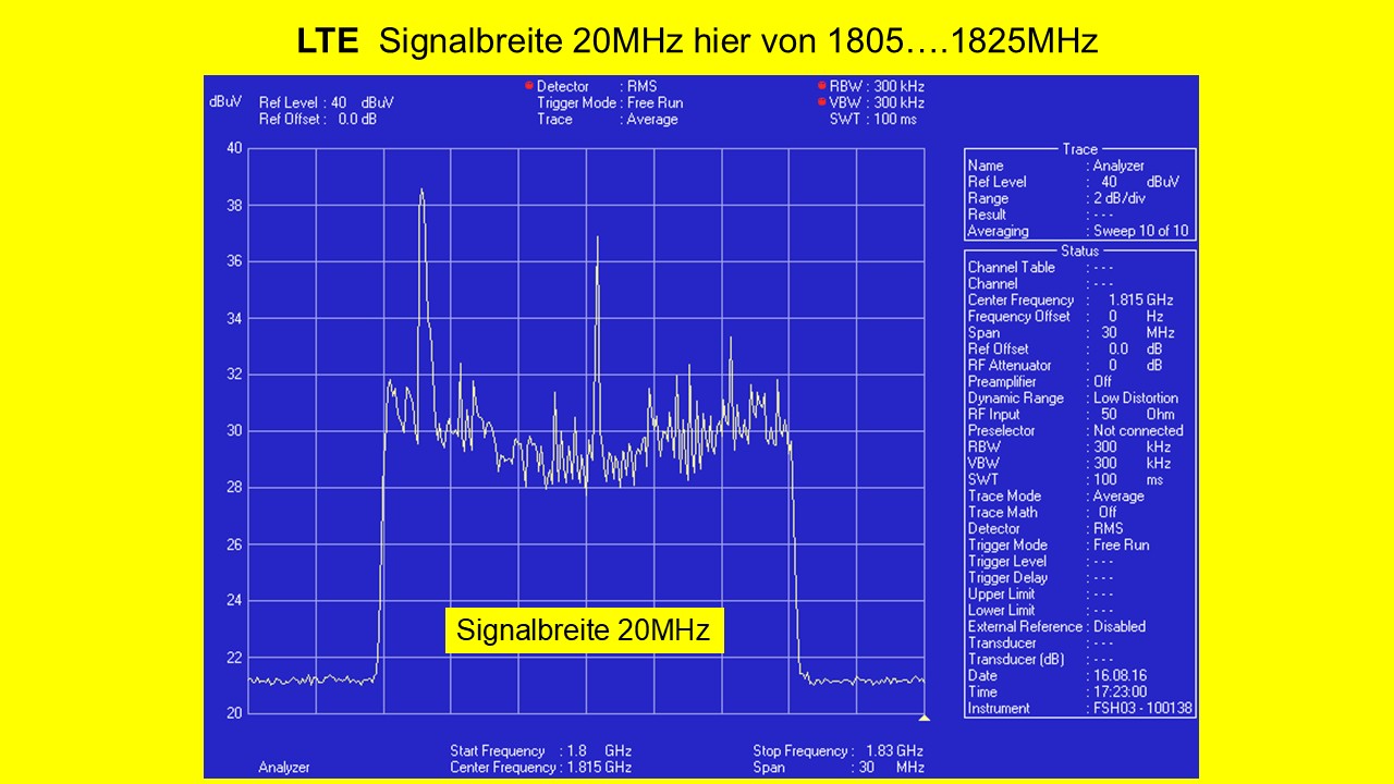 Die Signalbreite umfasst 20MHz und geht von 1805MHz bis 1825MHz