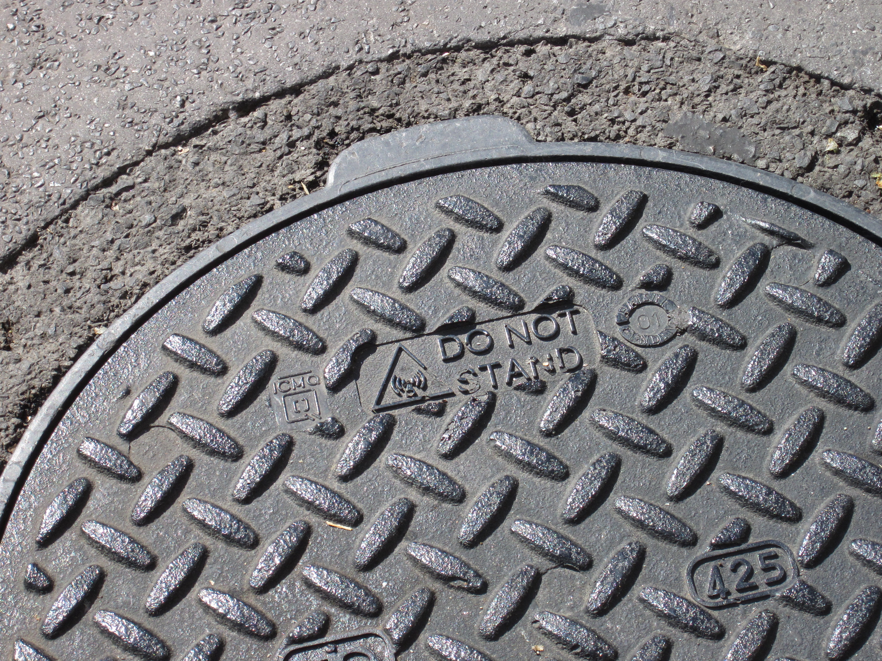 Da bleibt einem das Lachen im Hals stecken. Die Schachtdekelantennen-Markierung nach Patent des Gemeinderats der Stadt Bern.