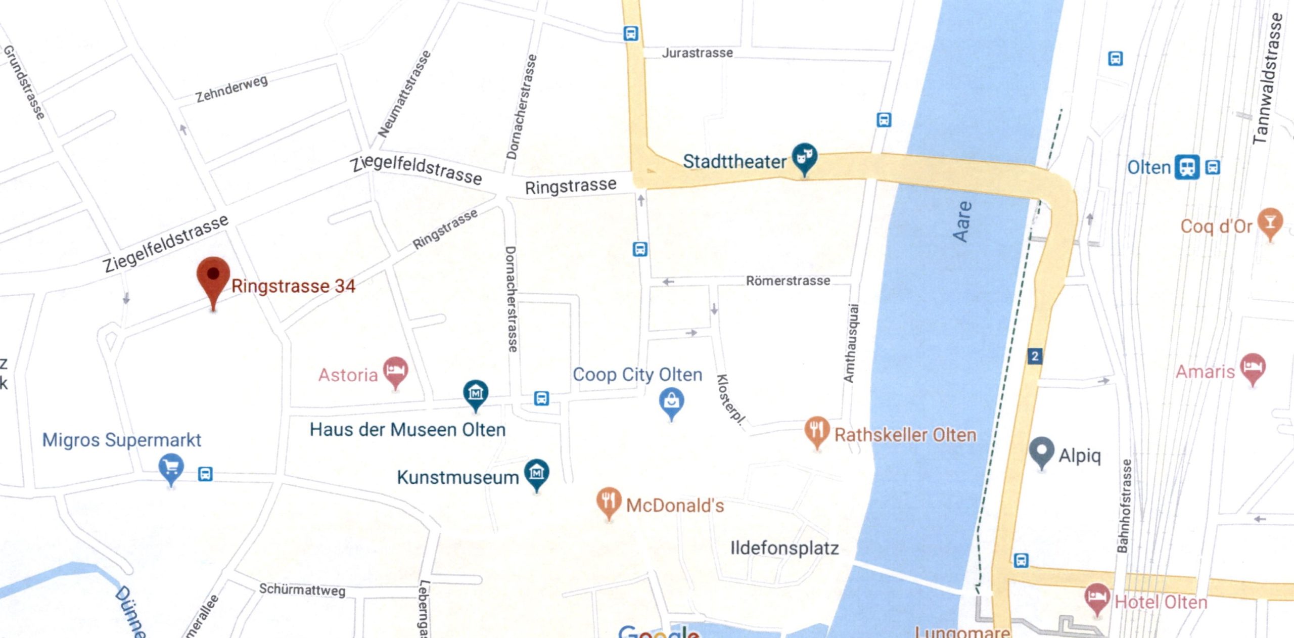 Anreise: Zu Fuss ab Olten Bahnhof 10 Minuten. Oder 4 Minuten ab Bushaltestelle Konradstrasse. Autofahrer benutze das Parkhaus Hübeli gleich nebenan.