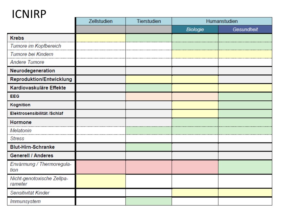 Wie Bild 5 zu entnehmen ist , anerkennt die ICNIRP ausser Wärmewirkung, keinerlei Schäden durch nichtionisierende Strahlung. Sie bezeichnet Menschen die trotzdem Symptome entwickeln, als Geisteskranke und empfiehlt der Ärzteschaft diese umgehend in die Psychiatrie zu überweisen. Fact-Sheet Nr.296.