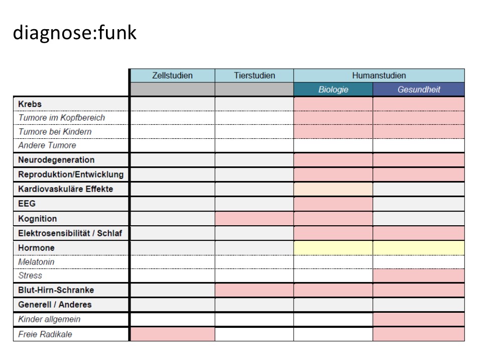Bild 7: diagnose:funk ( www.diagnose-funk.org ) ist eine Umwelt- und Verbraucherschutzorganisation für umweltverträgliche Funktechnik und Schutz vor Elektrosmog. Die Organisation ist im ganzen deutschsprachigen Raum tätig und beobachtet und kommentiert wissenschaftliche Literatur. Dabei hat sie u.a. eine Liste von weit über 100 Publikationen zusammengestellt, die Effekte nachwiesen. Dabei hat sich die als gemeinnütziger Verein anerkannte Organisation den offenen Zorn der Mobilfunkindustrie zugezogen und wird nun von deren Rufmordkommando, in gleichem Ausmass wie Gigaherz.ch, in den Medien und im Internet nach Noten gemobbt und gestalkt.